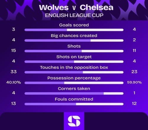 伤停补时阶段,狼队在禁区内制造混乱,无人盯防的沃尔费挑射将球打进。狼队3比4再追一球。