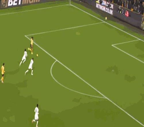 第73分钟,狼队手抛球制造禁区内混乱,无人盯防的沃尔费小角度抽射将球打入远角。狼队2比3再追一球。