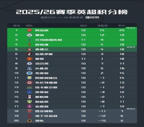 曼联暂以18分位居积分榜第7,净胜球+1为英超上半区最少