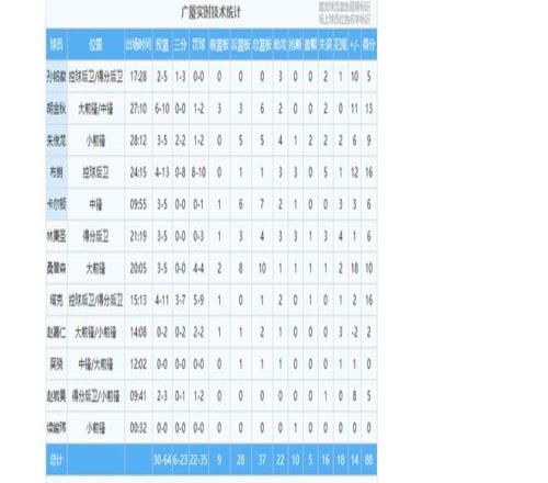 其中外援萨林杰得到19分、奎因得到14分、萨姆纳得到26分。外援累计得到59分,外援得分占比约为55.14%。