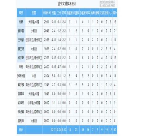 其中外援莫兰德得到4分,威尔斯得到12分,布朗得到16分。外援累计得到32分,外援得分占比为40%。