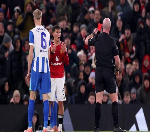 自卢克肖以来,莱西是首位被罚下的20岁以下曼联球员