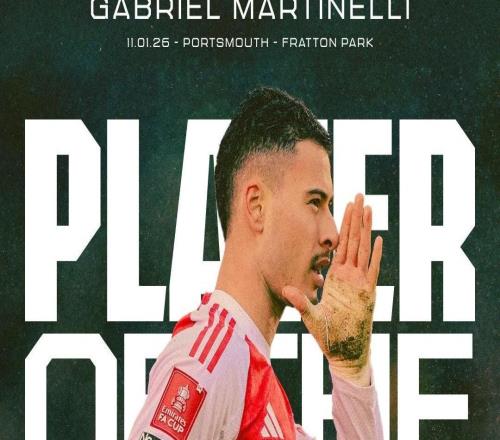 恭喜,枪手生涯首次戴帽的马丁内利当选阿森纳队内最佳 -